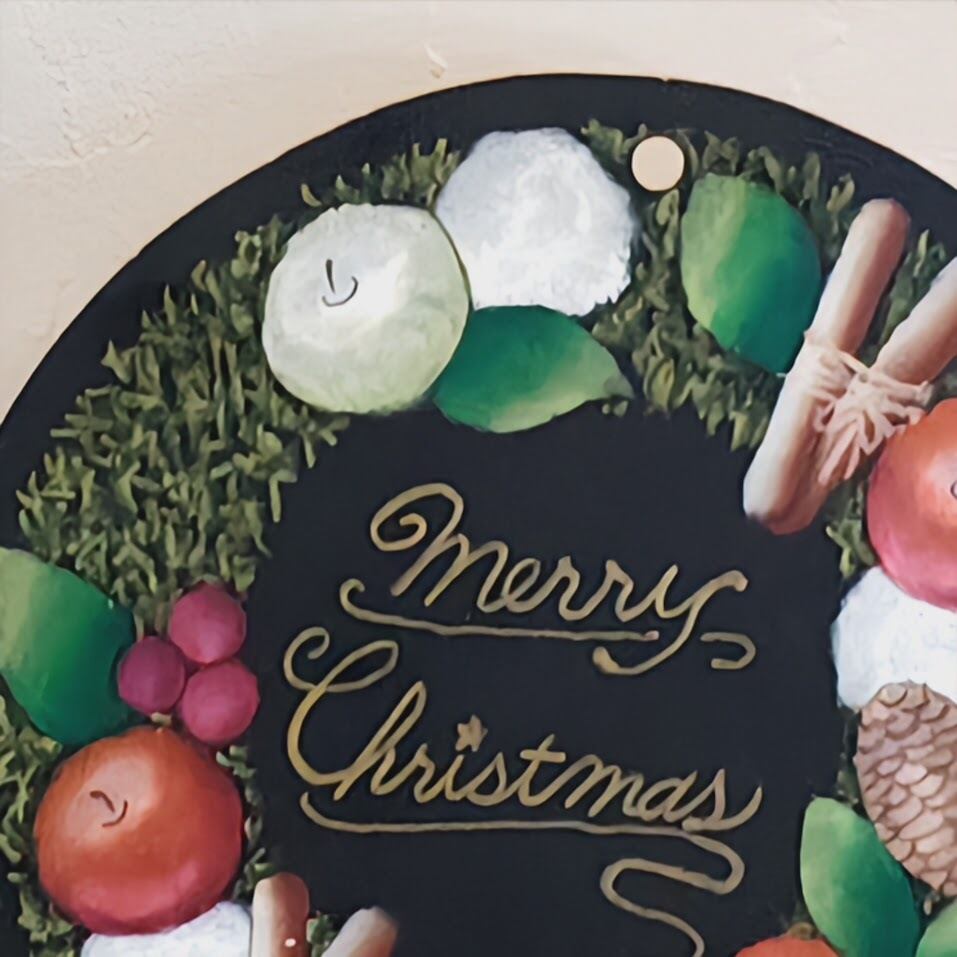 クリスマスのあたたかな灯りを飾る、手描きのチョークアートリースボード
