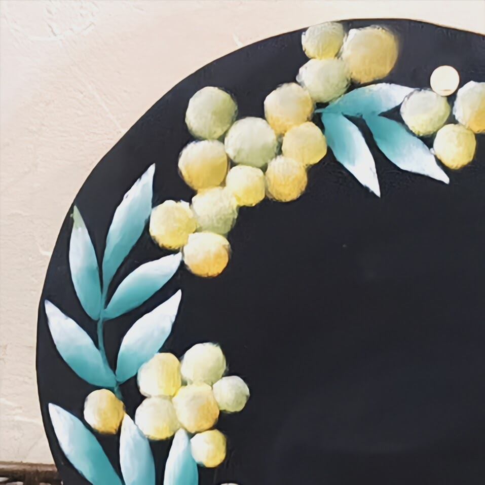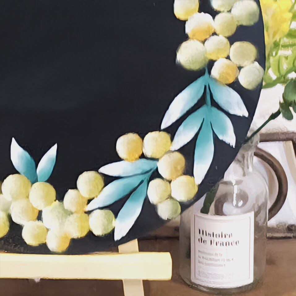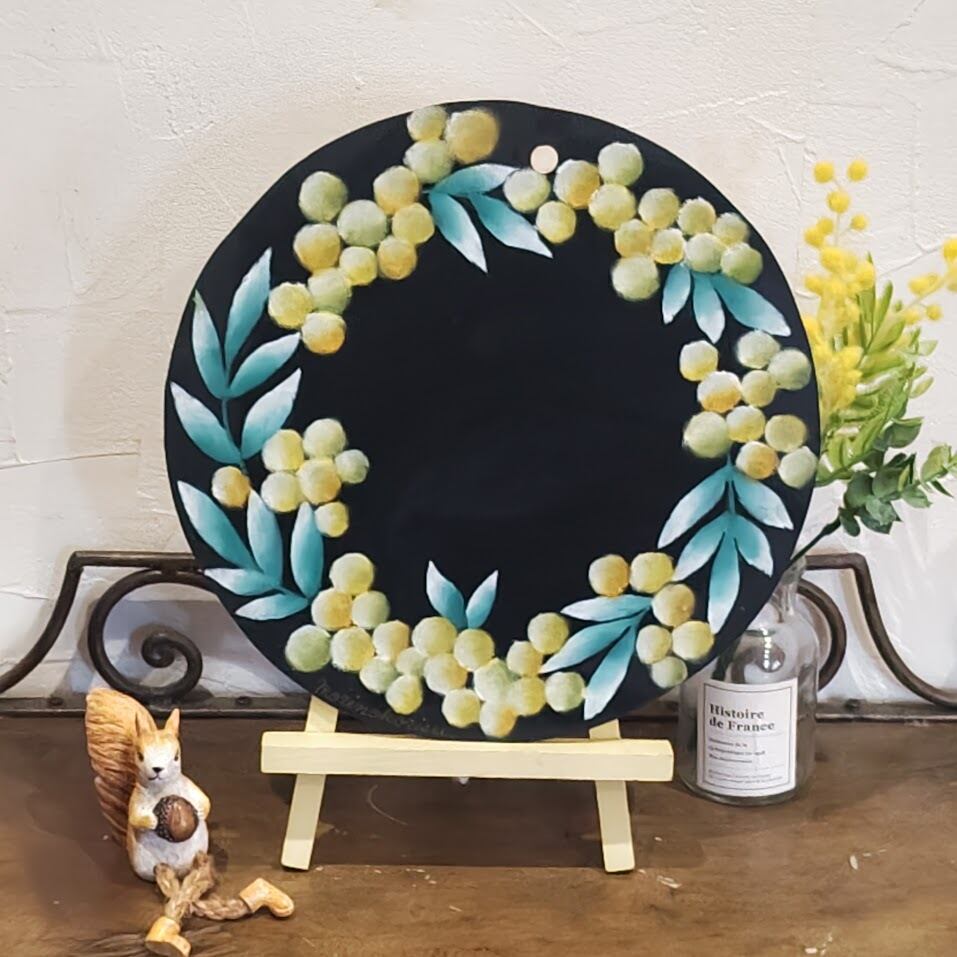 春の光をふんわり飾る、ミモザのチョークアートリースボード
