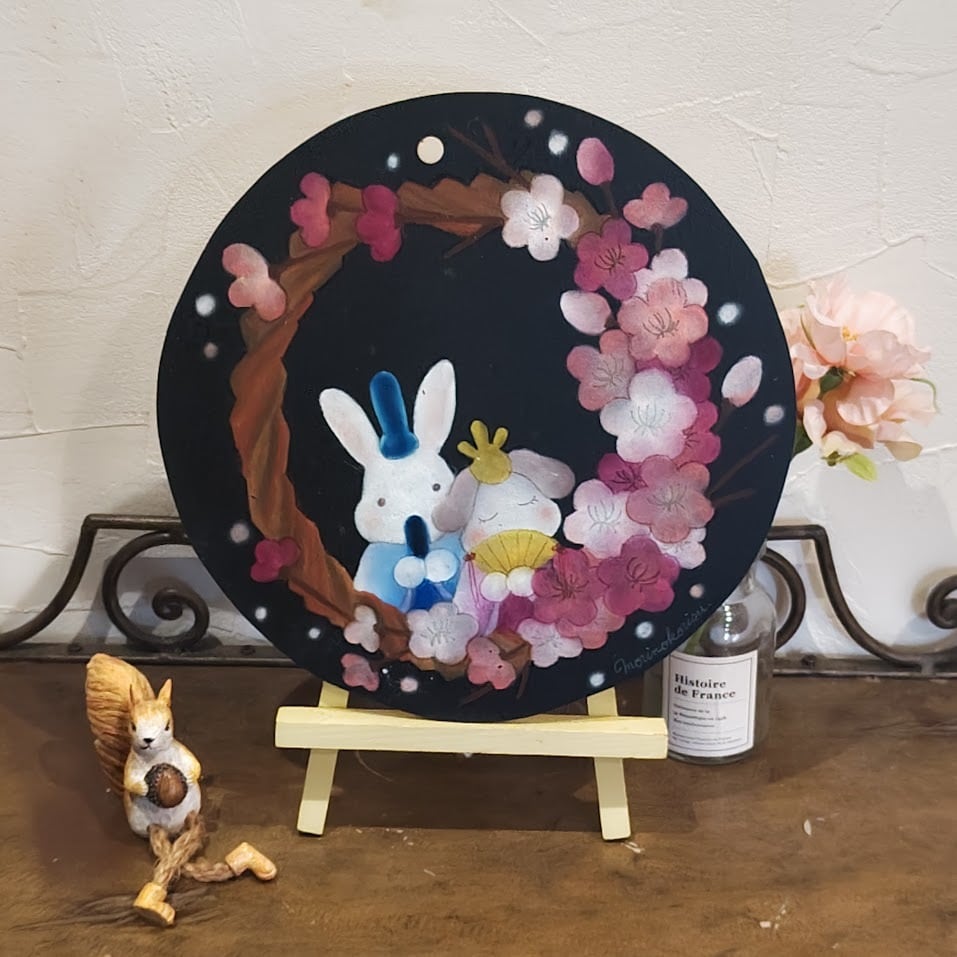 黒いボードに映える桃色の花々と、やわらかな表情のお雛様が、お部屋に明るくあたたかな春の彩りを運んでくれます。可愛らしさがありながらも落ち着いた印象なので、玄関やリビングはもちろん、ひな祭りの季節を楽しみたい空間にもおすすめです。