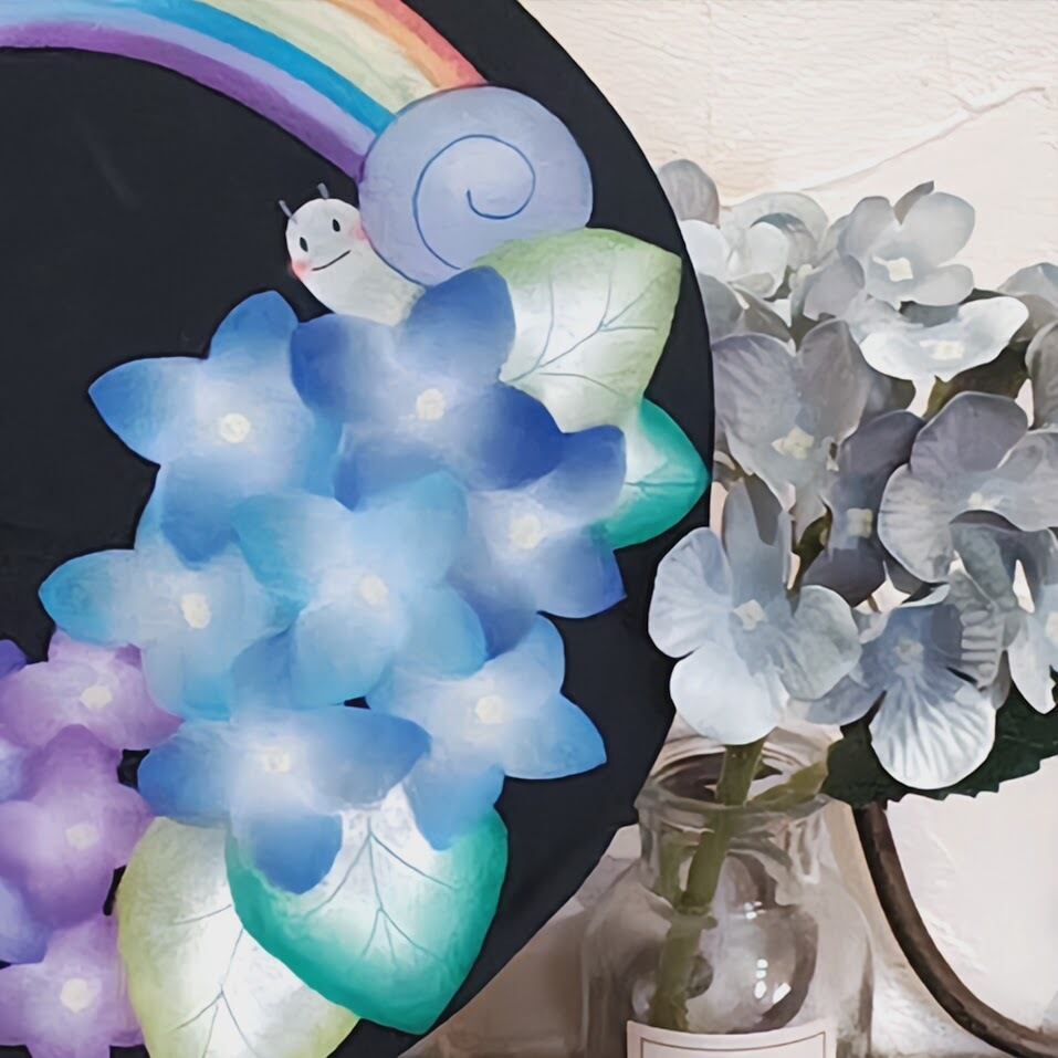 雨の日のあとに空にかかる虹のように、この作品には「大丈夫」「きっと晴れる」という前向きな気持ちをそっと添えてくれる魅力があります。玄関やリビングに飾るのはもちろん、梅雨の季節を楽しく過ごしたい方や、やさしい雰囲気のインテリアが好きな方への贈りものにもおすすめです。
