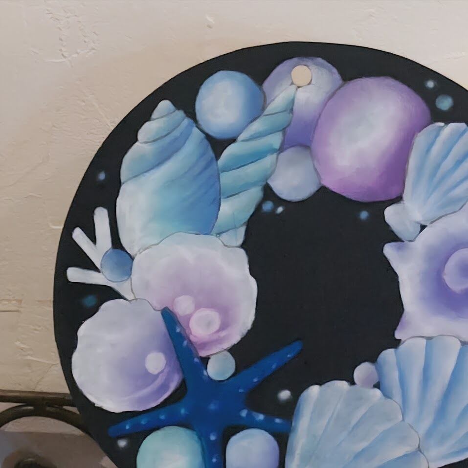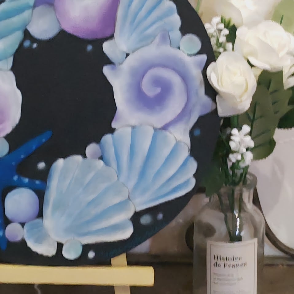 やさしい海のきらめきを飾る、貝殻のチョークアートリースボード
